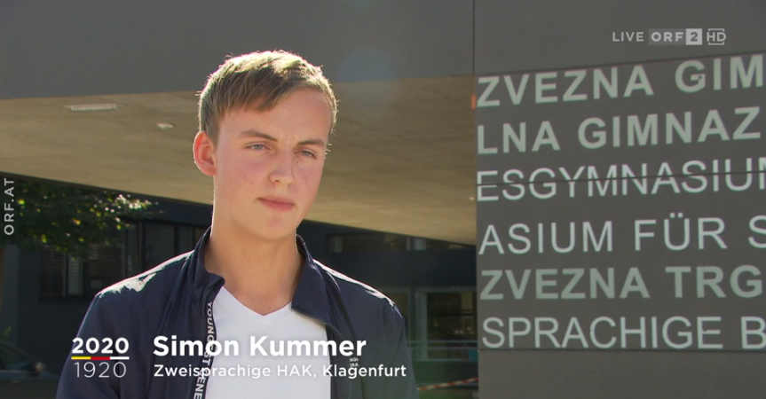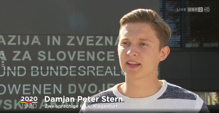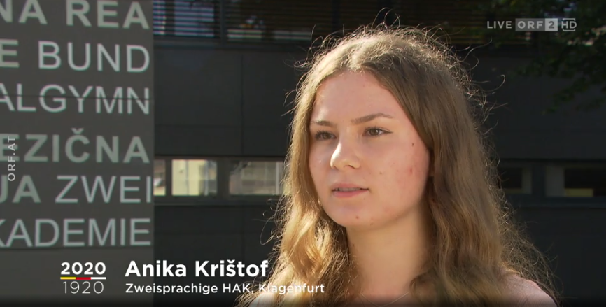 Am Samstag, dem 10. 10. 2020, wurde dem 100 Jahrjubiläum der Volksabstimmung mit einem außerordentlichen Festakt gedacht. Im Beitrag „Frei und ungeteilt“ hat der ORF einen historischen Umriss zur Volksabstimmung 1920 gesendet und dabei auch Jugendliche aus Kärnten befragt, welche Bedeutung der 10. Oktober für sie hat und was sich junge Menschen für die Zukunft wünschen. Auch einige SchülerInnen der Zweisprachigen HAK haben an diesem Beitrag mitgewirkt.