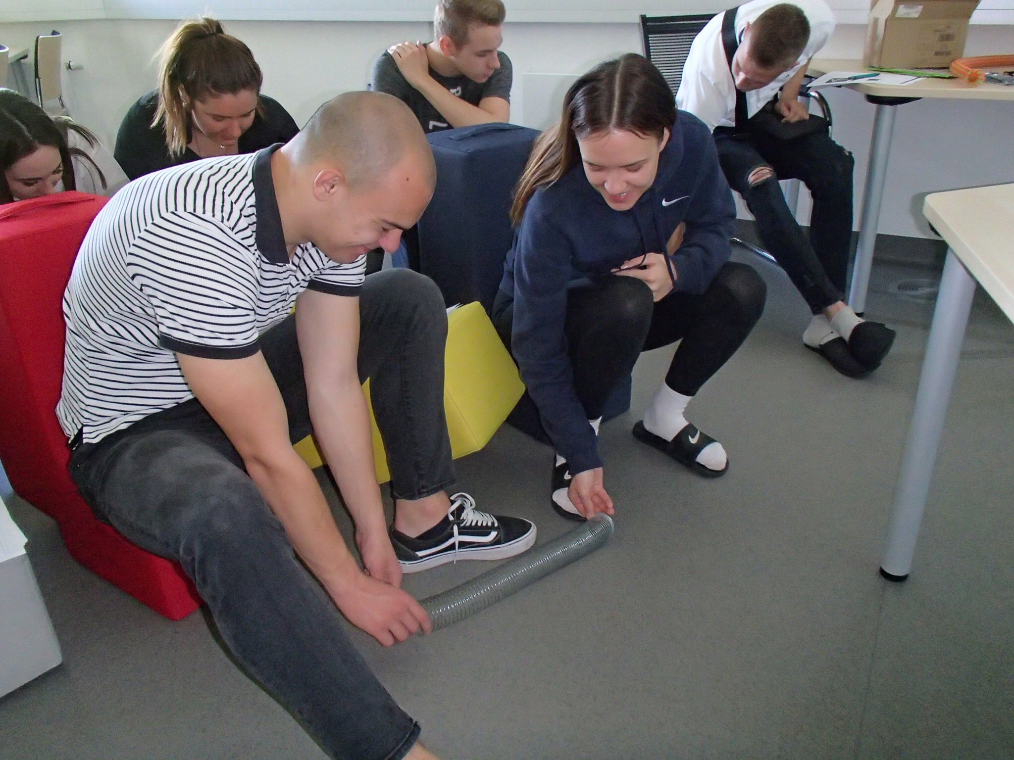 Zum Abschluss des experimentellen Vormittags bekamen wir verschiedene Plastikrohre, mit denen wir dann gemeinsam das Kinderlied »Hänschen klein« spielten.