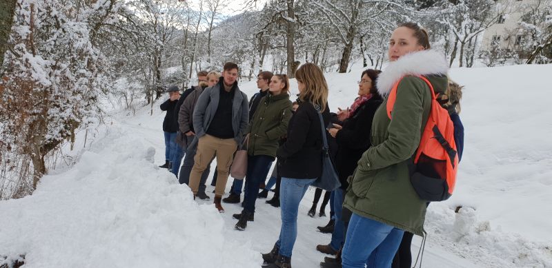 Der Bus führte am 29. Januar 2019 einige Schüler der 5A und 5B in eine unbekannte, von Klagenfurt etwa eine Stunde entfernte Region: Leppen. Einer von mehreren sogennanten Gräben von Bad Eisenkappel. Von Zdravko Haderlap wurde uns dort die Geschichte Leppens und der Gräben näher gebracht. Der Grund, warum wir dort waren? Einige bekannte Autoren wie Maja Haderlap, Valentin Polanšek und Florjan Lipuš wurden dort geboren und sind dort aufgewachsen. Unser erster Treffpunkt war die alte Volksschule in Leppen.